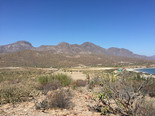 Any place named Los Muertos...We love the rugged beauty of the Baja desert dropping into the clear sea, and Los Muertos certainly met our expectations. Though we enjoyed our time here and it was a comfortable anchorge, it held its share of poor luck for us. We tried to hike over the north hill to get a look at the channel and water conditions that we would soon be traveling, however it was all private property (with guard shacks along the dirt roads), so we were not able to go very far. So the next day we settled for a snorkel and hike of the south side of the bay. The snorkeling was nice, but when we rowed ashore we noticed a wild cat watching and decided it would be safer for Lily to go tide pooling along the shore instead since we had neglected to bring her leach with us. We found an interesting beach covered in broken pieces of coral, and Lily made her first attempts at "fishing" by diving into the tide pools after the tropical fish. We decided to get an early start and leave the next morning by moonlight. Unfortunately, our chain was stuck on a rock, so we needed to hold off until sunrise so that Jim could dive down to get the chain unstuck. Once we got under way, we decided to put up the mainsail in spite of the calm conditions to see if we could get some lift. It is a good thing we did, as it gave us some directional control (however slowly), when our engine stopped just outside the narrow channel between the mainland and islands. It took us about an hour drifting to finally get it started again after resolving the fuel/fuel filter issues. Since we had gotten a later start than expected, we stopped at Bonanza anchorage on Isla Espiritu Santo. We spent some time at Ensenada Grande on Isla Partida and at San Everisto. When we are not traveling to new anchorages, we spend time swimming, snorkeling, rowing to shore and hiking, meeting new people or just hanging out reading and listening to music. We can never express enough how fortunate we feel to be able to live a life full of beauty and adventure