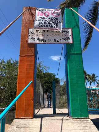 We happened to be in La Piñeta on the day of the street market. It was an overwhelming display of regional arts and crafts (some of which we hadn’t seen the likes of before), artisanal foods, and more flea market type stalls with everything you can imagine. We had taken the collective bus to get here, but decided to walk back. There is a river that separates the two towns that we followed upstream until we found a place to cross. We found the crossing at “The Bridge of Life”. I wondered if it was named that because of the possibility that people may have been killed by crocodiles while crossing before there was a bridge (after all there are no shortage of crocodile farms in the region). I never found out if that was the case or not, but I can say that when we got to the opposite side there was a small gated in area right next to the bridge named Crocodile Bar. Anyway, the footbridge was pretty interesting. It was a pretty lengthy suspension bridge made of wood planks that was very difficult to walk across even with our well established “sea legs”.