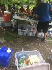 Our stay in Port Clinton was unique. Not only was it a treat to stay at a town where a hot meal could be purchased, but also a church there has a big pavilion that they let hikers sleep under for free. Community members bring by bags and tubs of what hikers call "trail magic" to the pavilion. Trail magic is any unexpected kindness to long-distance hikers and can come in many forms. In this case it was lots of trail snacks and an ice chest of cold drinks. It is amazing how impactful trail magic can be on hiker morale.